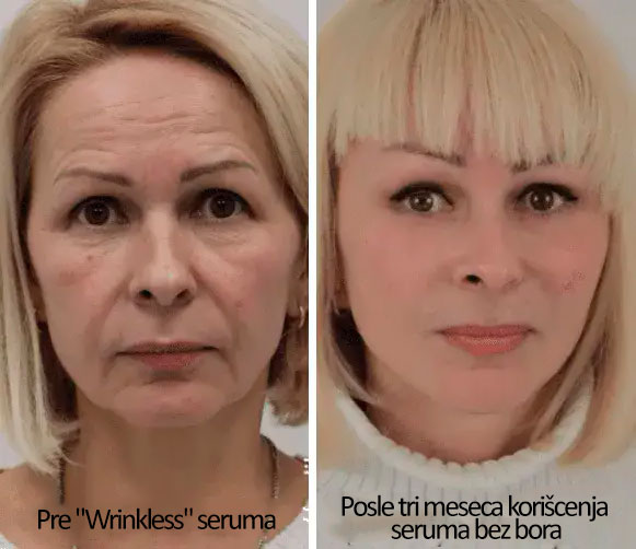 "Wrinkless" takođe kupljen od kozmetičara. Rezultat mi se veoma dopao, ali onda je kozmetičarka rekla da više nije moguće naručiti. Bila sam jako uznemirena, do suza. Počela sam da tražim na internetu i hvala Bogu da sam našla ovaj članak. Uzela sam to sa marginom, bojim se da će opet nestati, pogotovo što se takva situacija dešava u svetu.